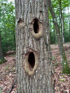 I like naturally expressive tree faces. A physical injury began the process, opening a portal for internal decay. A woodpecker excavating a nesting hollow. A squirrel gnawing edges to enlarge the opening. Both tree are actively callousing the edges in attempt to close the openings. The tree at left has successfully closed the left upper opening. The other tree has almost buttoned the lower hole.
