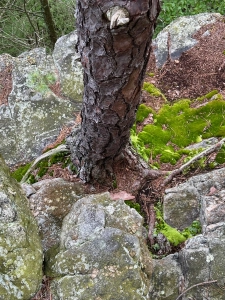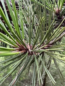 Table mountain pine’s range does not extend to Alabama. I encountered it often when I served as a forester’s aid on western Maryland’s Green Ridge State Forest between junior and senior undergraduate years. I found it mostly on xeric stony sites in ridge and valley Allegany County. Its form is gnarly, seldom growing straight and tall. Its needles are coarse and spiny. It finds anchorage in shallow soils.