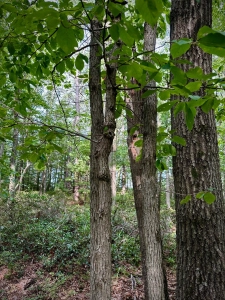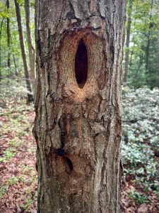 Each of these red oaks can tell a story of your choosing. At left, I see two eyes, one covered by a patch; the other eye wide in surprise or amazement. Its mouth could not be more expressive! The one-eyed oak at right is fearful…deeply concerned. I categorize both inviduals as tree form oddities or curiosities. Our forests are rich with wonder, awe, and mystery.