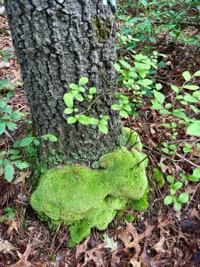 Pinchusion moss embraces a back oak base, bringing to mind a neck scarf on a breezy winter morn.