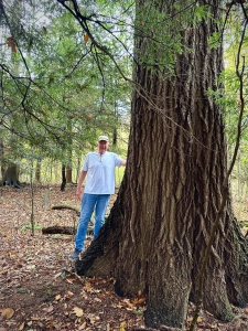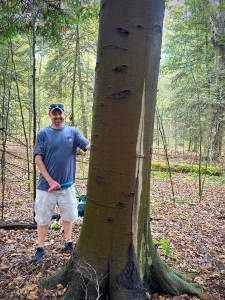 Matt stands six-feet tall, behind a 30-inch diameter American beech. The red oak beyond the beech (at left) is nearly 40-inches in diameter.