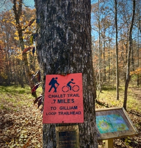 I chose the Chalet Trail to focus on the benefits and consequences of prescribed fire as a parkland management tool. Note that the sign is sanctioned by: Alabama Prescribed Fire Council; National Wild Turkey Federation; The Nature Conservancy; and The Longleaf Alliance.